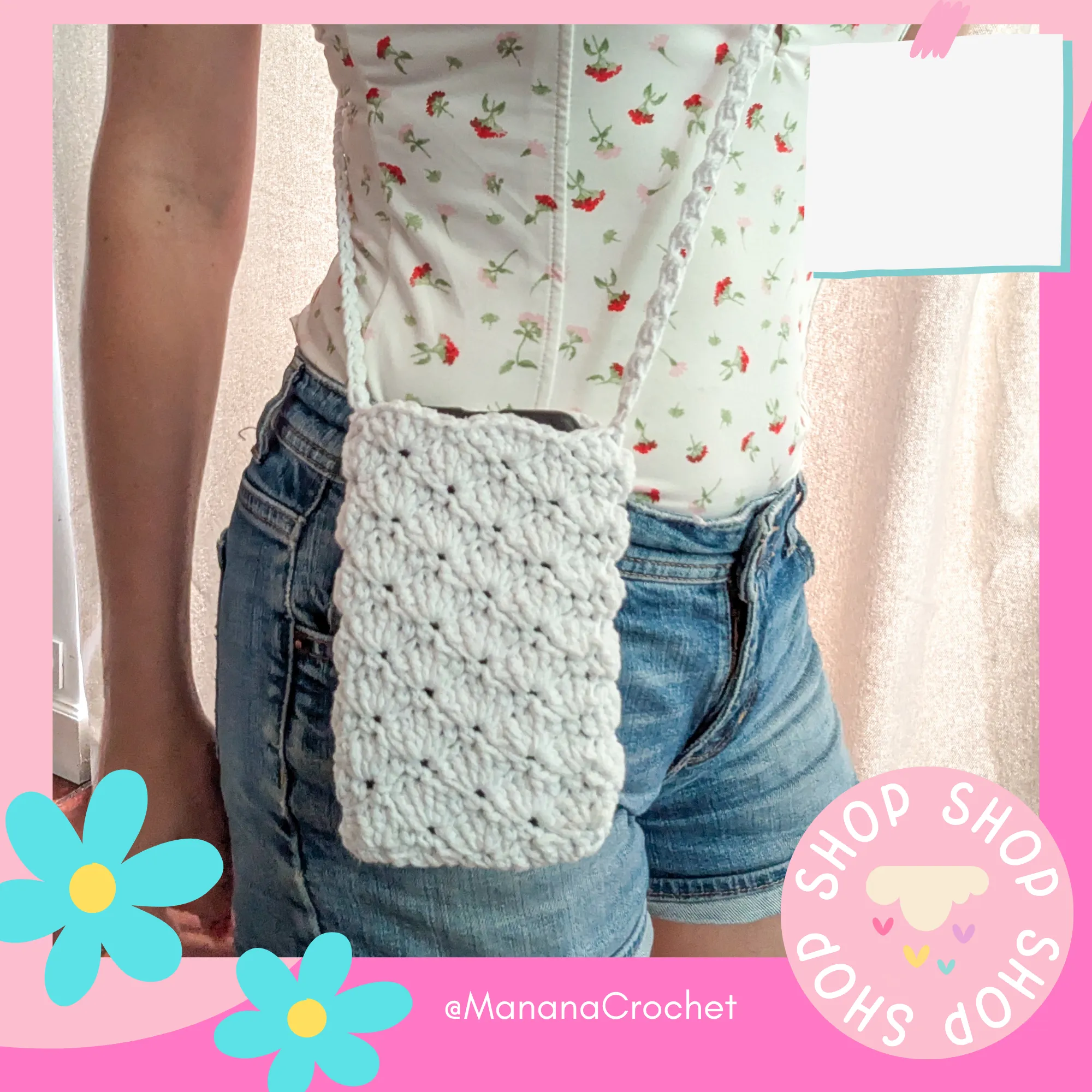 Cet étui blanc réalisé au crochet vous permet de l’utiliser pour la plupart des smartphones et autres petits objets, et la longue anse de 100 cm le rend facile à porter sur votre épaule ou autour du cou.
