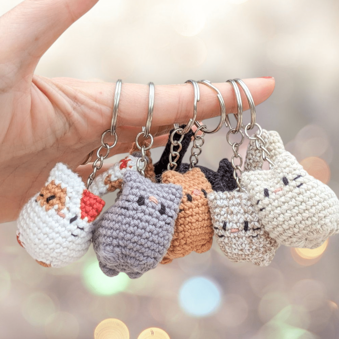 Avec leurs différentes couleurs – du beige crème au caramel, en passant par le gris ou les motifs tachetés – ces mini chats au crochet s’adaptent à tous les styles : kawaii, minimaliste, girly, ou totalement fun.