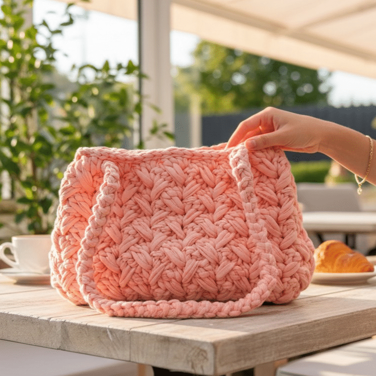 Ce sac à main rose en crochet fait main apporte instantanément une touche douce, moderne et résolument féminine à votre tenue.