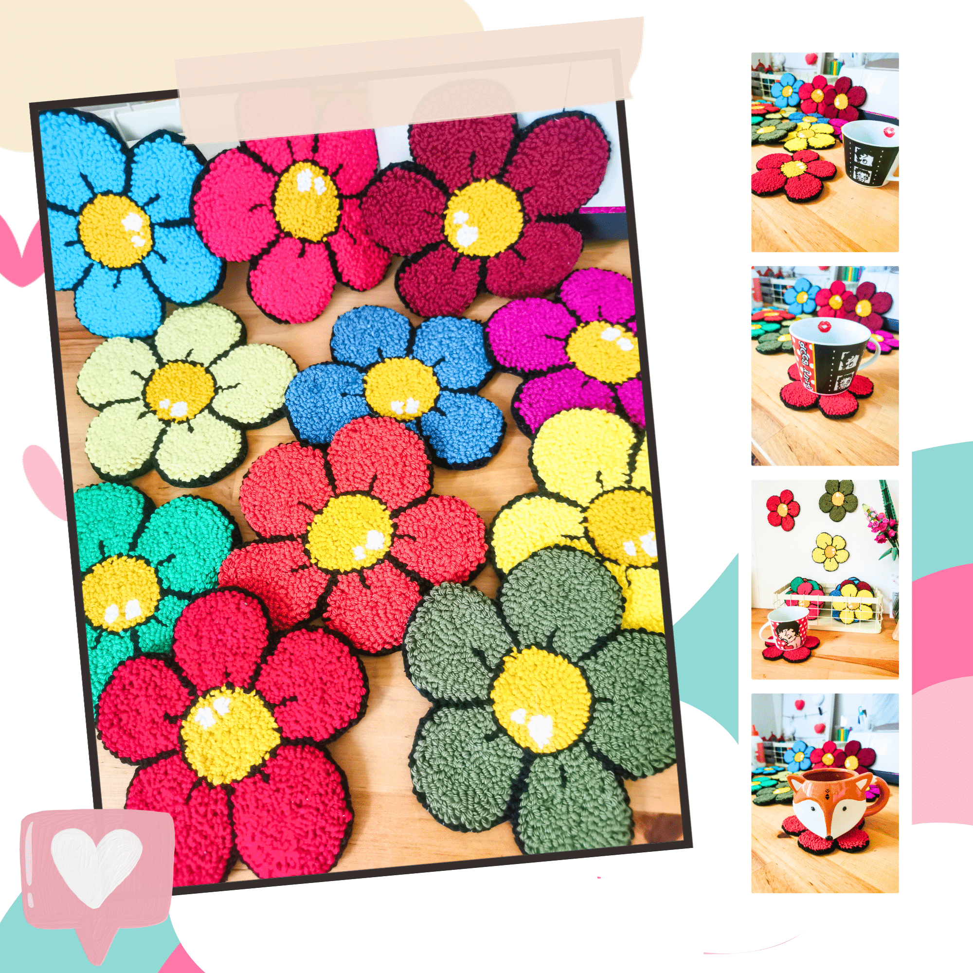 Ces petits sous-verres fleurs en punch needle sont de vraies pépites déco pour sublimer votre table avec charme et originalité. Entièrement réalisés à la main, ils apportent immédiatement une touche chaleureuse, artisanale à votre intérieur.